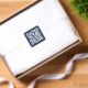 Easily personalize the QR code by adding your link in the sidebar to create your own custom scannable stickers with a navy blue background.