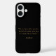 Create your own quote iPhone case. Features your favorite inspirational quote, song lyric, funny saying, bible verse or custom text in minimalist black and gold typewriter style typography.