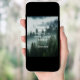 Create your own custom quote poster wall art. Features minimalist typewriter typography and moody forest nature landscape background.