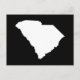 A simple blank modern minimalist design featuring the map shape of the state of South Carolina in white against solid black.