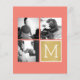 coral and gold foil print background - Use 3 square photos to create a unique and personal anniversary gift. Add the bride and groom's initials. If you need to adjust the pictures or monograms, click on the customize tool to make changes.