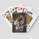 These custom poker cards feature your photo printed on the back of each card, creating a fun and personal design that stands out. A subtle black gradient behind the text ensures “Mr. & Mrs” in large white handwritten script is easy to read, while the wedding date appears in a clean serif font for a classic and balanced touch.