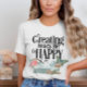 Made from high-quality materials, it ensures a comfortable fit and feel. The design features the phrase 'Creating Makes Me Happy', giving a unique appeal to the shirt.