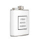 Well made flask, a little better than I had expected. Flask came in clear plastic box which gave it a nice presentation when I took it out of the zazzle packaging. Image is not printed on flask but on sticker. Don't know how this will hold up I haven't used it yet. This would make a Great gift! I plan to purchase more for friends! Cheers. I thought a little brighter than computer. Very crisp, writing wasn't