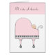 Creative baby girl gift thank you cards featuring cute little newborn in a pink baby grand piano.
