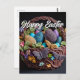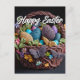 This holiday postcard features several colorful Easter eggs resting in an artistic basket.