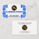 Overleaf, in a white cover, over at the top is your prestigious name and a slogan caption to publicize your services. Change the caption remarks to suit your service needs. Just below this is the "leaking pipe" logo followed by the contact details near the base of the card.