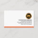 Overleaf, in a white cover, details are at the card's right wall with a gold home landscape logo you can use, at the top. This is followed by your prestigious name, the contact details and a slogan option. A similar orange stripe encapsulates the base of the card.