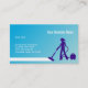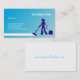 Business card with an iconic silhouette of a professional cleaner in shades of blue.