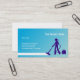 Business card with an iconic silhouette of a professional cleaner in shades of blue.