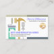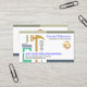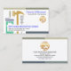 A white cover is encapsulated by grey and blue shade borders at the top and bottom layers of the card. A contractor's motif consisting of a roller paint brush, a hammer and a screwdriver house the business name and its contact details. Towards the top lies your prestigious name and a slogan caption to publicize your services ; Change the caption remarks to the slogan to suit your own service needs. Just below this is a gold home logo you can use.