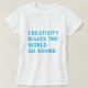 Tshirt for creatives features the text 'creativity makes the world go round' in bright blue bold typography. Exclusively designed for you by Happy Dolphin Studio. If you need any help or matching products, please contact us through our store chat!