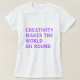 Tshirt for creatives features the text 'creativity makes the world go round' in bold bright purple typography. Exclusively designed for you by Happy Dolphin Studio. If you need any help or matching products, please contact us through our store chat!