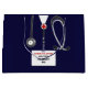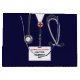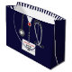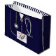 Unique medical school graduation gift bag for doctor grad featuring navy blue hospital scrubs and stethoscope. Edit text to add doctor, physician assistant or nurse's name and medial credentials.