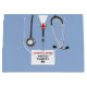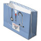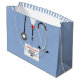 Unique medical school graduation gift bag for doctor grad featuring blue hospital scrubs and stethoscope. Edit text to add doctor, physician assistant or nurse's name and medial credentials.