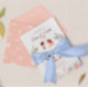 The matter paper is our sample of choice -- it's a reasonably priced, good quality, nice feeling paper stock. We were a little concerned the muted rustic blues might not reproduce all that well (usually by light colored samples), but they're just gorgeous! The white lettering is perfect in combination with the blue background, and the typography is all easy to read.