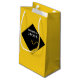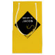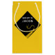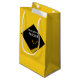 Graduation gift bag featuring black and gold cap design on a yellow background. Edit text to add senior class grad's name.