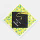 Personalized graduation party napkins for the grad featuring black graduation cap and gold tassel on teal blue and yellow confetti background. Edit text to add his or her name.