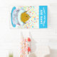 Groundhog Day happy birthday banner featuring groundhog jumping out of a cake. To personalize edit text to add his or her name.