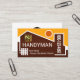 Just below the window is the business name "HANDYMAN" alongside a slogan caption ; You can change both captions to suit your own service needs. Held vertically on the right, inside the chimney is the contact details.