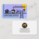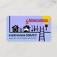 These tools represent some of the work or service that you might offer e.g. at the top, the red hammer that holds your prestigious name can represent home construction work. The bulb for electrical, the spanners for mechanical repairs, the faucet for plumbing, the spade-trowel-fork for landscaping, gardening and finally the ladder and brush for painting. Each tools' representation is left to your own interpretation. Near the base of the card lies the business name and its contact details.