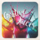 A vibrant, energetic coaster featuring splashes of bold color behind the playful hand-lettered phrase “Creative Juices.” Perfect for artists, designers, and anyone who loves a burst of inspiration with their drink.