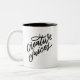 Gotta get those creative juices flowing in the morning! This fun, handlettered mug reads “creative juices” in large type on one side and “drink for inspo” in smaller type on the other.