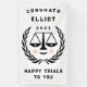 Unique law school graduation congratulations party banner featuring scales of justice and funny line. To personalize edit text to add graduate's name and the year.