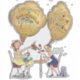 Rustic wooden paneling background with cute canteen girl drawings with thought bubbles thinking: - creativity is magical, not magic - Creativity is a drug I cannot do without - I love cooking with wine - sometimes I put some in the food. I love strong coffee.