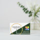 A creative design with all the shapes required for the study of math. You have circumference of circle C=2πr , trigonometry - the study of triangles and finally the axis of x-y. The cover is divided into 2 halves i.e. an upper white layer against an emerald green piece with a floating numbers design. Inside the gold circle lies your prestigious name and job title. To the right of this is a colorful calculator logo you can use with the contact details just below.
