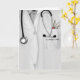 Amusing medical school graduation card featuring medical lab coat, funny Swiss army knife and personalized illustration. Edit text to add name of your favorite doctor grad.