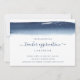 Modern and creative horizontal teacher's day invitation featuring a simple design with a navy blue watercolor brushstroke across the top, over a white background. The title is in a handwritten font with swashes and the event details are in a sans serif font. The backside is a solid navy blue. These unique and artistic invitations are great for any type of teacher appreciation celebration.