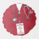 Personalized nurse appreciation gift and party decor featuring creative quote, red hospital scrubs and a stethoscope. To personalize, edit text to add nurse's name or otherwise customize.