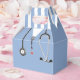 Unique nurse or doctor appreciation, healthcare event, birthday or graduation party favor gift boxes featuring blue hospital scrubs and stethoscope.
