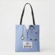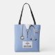 Unique nurse purse gift bag featuring hospital scrubs, funny Swiss Army knife and stethoscope. To personalize edit text to add name and nursing credentials.