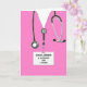 Personalized nursing school graduation cards featuring pink hospital scrubs and unique quote. Edit text to add name of nurse.