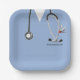 Unique nursing school graduation party plates featuring hospital scrubs, stethoscope, and funny Swiss Army knife design. To personalize edit text to add name of your favorite nurse.