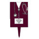 Creative nursing school graduation party cake or food decoration featuring burgundy hospital scrubs, stethoscope and Swiss Army knife. Edit text to add name of nurse grad.