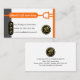 Cover features a creative power plug line design ; It carries your business name "electrical services" which you can change. Just below this are your card details in their respective gold lightning power buttons. Near the lower right corner is a gold "home letter-e electrician" logo you can use.