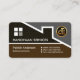 Cover features a creative rooftop building design. Over at the top in the bricked layer is your business name "Handyman Services" which you can change. Rising near the chimney is the gold tools logo (the sun) you can use. The brown layer underneath has your prestigious name, job title with the contact details in their respective buttons on the right.