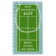 Funny tennis gift bag featuring court design and personalized line. To personalize edit text to add his or her name.