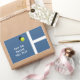 Unique tennis gift stickers, party favor labels and envelope seals featuring yellow tennis ball on blue tennis court. Edit text to customize.