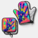 Creative Vibrant Hand Splash Art Oven Mitt & Pot Holder Set