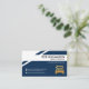Overleaf, in a blue cover, details are at the right wall with the gold logo at the top followed by your name, contact details and a slogan caption.