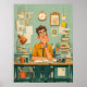 An imaginative scene of a thoughtful writer seated at a cluttered desk, surrounded by towering stacks of books, scattered notes, and a ticking wall clock. Warm lamp light highlights his focused expression, while a vintage camera and potted plant add character. Perfect for inspiring creativity, study spaces, offices, and literary enthusiasts who appreciate hardworking, reflective moments.