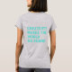 Tshirt for creatives features the text 'creativity makes the world go round' on the back of the tshirt in bright turquoise blue typography on a gray background. Exclusively designed for you by Happy Dolphin Studio. If you need any help or matching products, please contact us through our store chat!
