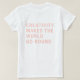 Tshirt for creatives features the text 'creativity makes the world go round' on the back of the tshirt in pastel pink typography on a white background. Exclusively designed for you by Happy Dolphin Studio. If you need any help or matching products, please contact us through our store chat!