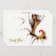 An abstract art design of a mythical flying dragon in red, gold and black, also leaving an image of their flight path.