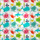 Cute, fun, colorful, great for kids or anyone who loves sea creatures, this fabric has a white background and lots of creatures from the sea including sea turtles of pink, green, and blue, blue whales with water spouts, crabs of red and yellow, and sea horses in rainbow colors!