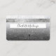 An elegant modern, stylish Hair and makeup artist credit card style business card with a modern script font typography on a chic faux black glitter ombre gradient and glam white marble trendy background. all text is customizable, add your social media. Featuring faux silver stripe. Add your logo, your monogram and QR code.